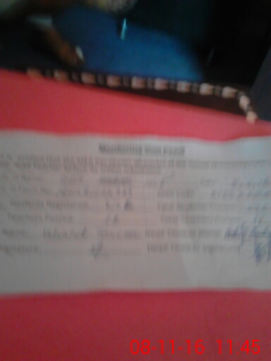 | Monitoring Date: 08-11-2016 | Start Time: 08-11-2016 10:58 AM | End Time: 08-11-2016 11:46 AM | Name of MEA: Kh**** Ta**** | |