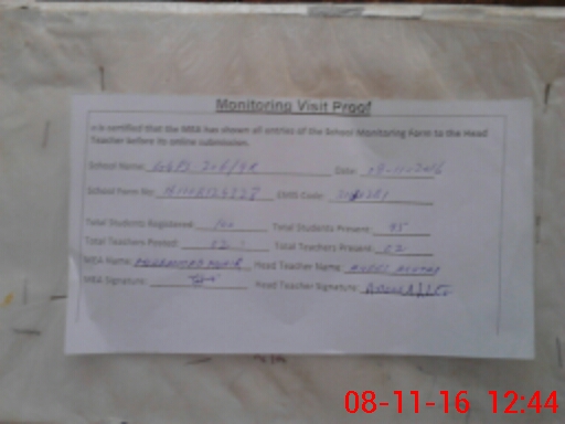 | Attendance Register | Head Teacher | MEA with School | Visit Proof |
