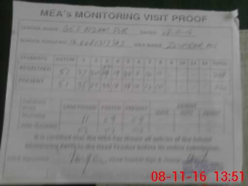 | Attendance Register | Head Teacher | MEA with School | Visit Proof |