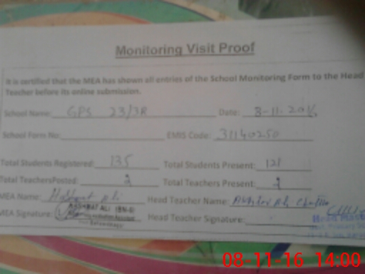 | EMIS Code: 31140250 | Name of School: GPS CHAK NO 23/3-R | |||