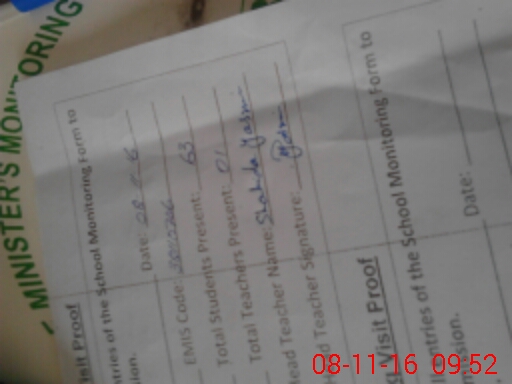 | Attendance Register | Head Teacher | MEA with School | Visit Proof |