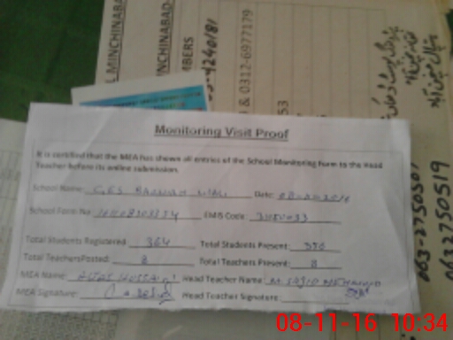 | Certified that this School was Inspected by the Undersigned MEA/DMO Today and the Information Stated Above is as Per Record. | |||||