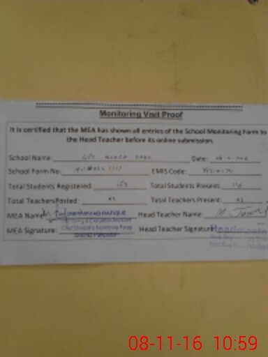 | Attendance Register | Head Teacher | MEA with School | Visit Proof |