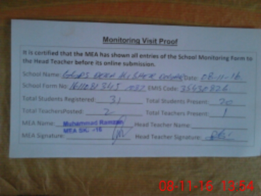 | EMIS Code: 35430826 | Name of School: GGPS ALI SHER DOGRAN | |||