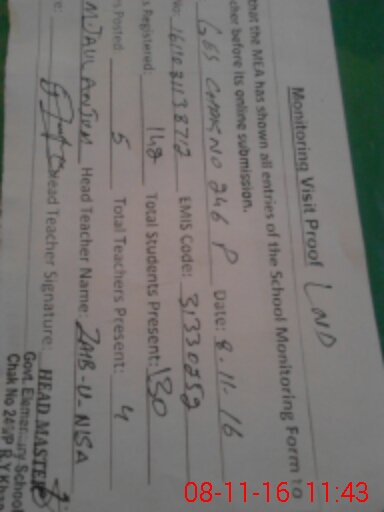 | Certified that this School was Inspected by the Undersigned MEA/DMO Today and the Information Stated Above is as Per Record. | |||||