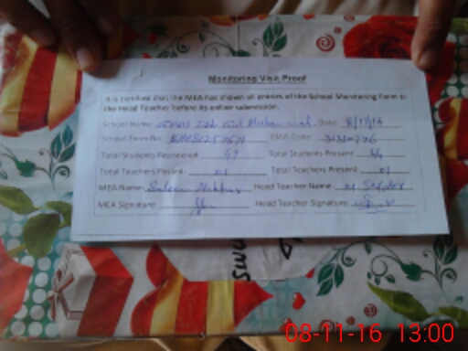 | Attendance Register | Head Teacher | MEA with School | Visit Proof |