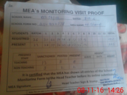| Certified that this School was Inspected by the Undersigned MEA/DMO Today and the Information Stated Above is as Per Record. | |||||