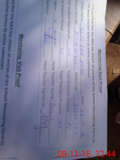 | Attendance Register | Head Teacher | MEA with School | Visit Proof |