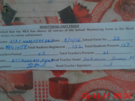 | Name: Um**** Bu**** Sh**** Designation: (School Headmaster's/Headmistress's) EST Phone/Cell Number: 03**** |