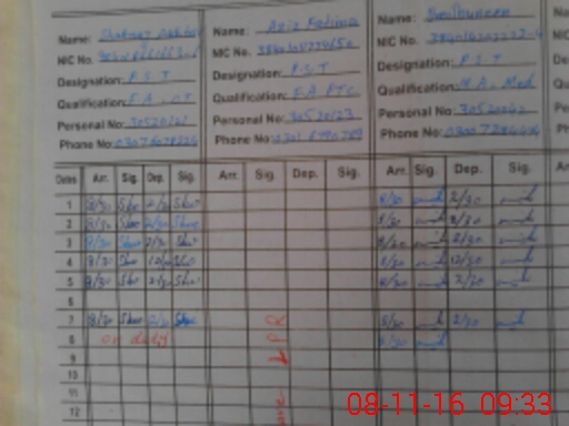 | CNIC | Full Name | Designation | R/C | Absence During Last Calender Month |