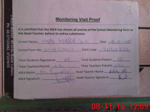 | Attendance Register | Head Teacher | MEA with School | Visit Proof |