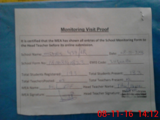 | Attendance Register | Head Teacher | MEA with School | Visit Proof |
