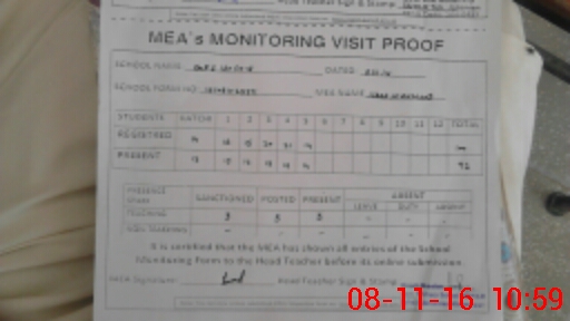| Attendance Register | Head Teacher | MEA with School | Visit Proof |