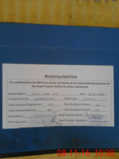 | Certified that this School was Inspected by the Undersigned MEA/DMO Today and the Information Stated Above is as Per Record. | |||||