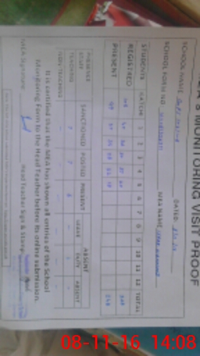 | Attendance Register | Head Teacher | MEA with School | Visit Proof |