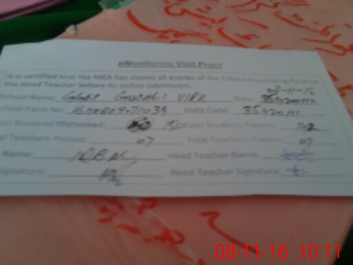 | Attendance Register | Head Teacher | MEA with School | Visit Proof |