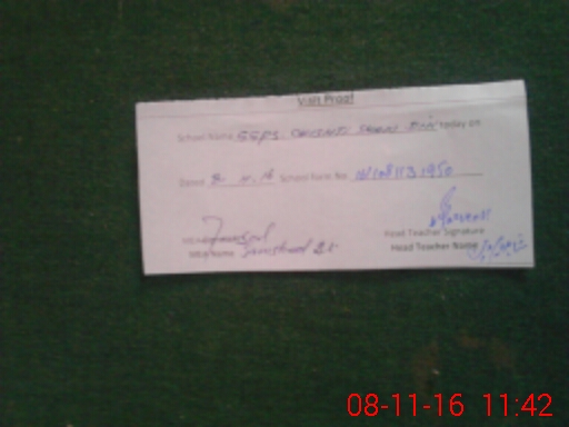| School Visited by School Health & Nutrition Supervisor (No. of Visits) | 1 | Name1: | QADIR KHAN | Name2: | QADIR KHAN |