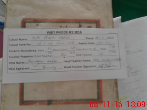 | Attendance Register | Head Teacher | MEA with School | Visit Proof |
