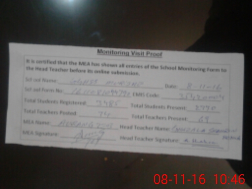 | Attendance Register | Head Teacher | MEA with School | Visit Proof |