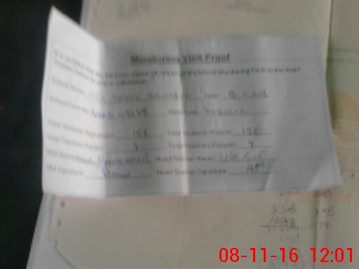 | Attendance Register | Head Teacher | MEA with School | Visit Proof |