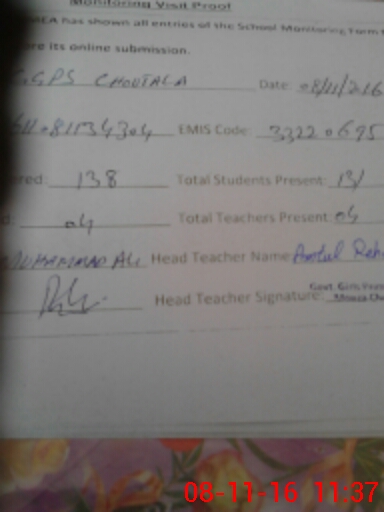 | EMIS Code: 33220695 | Name of School: GGPS CHUTALA | |||
