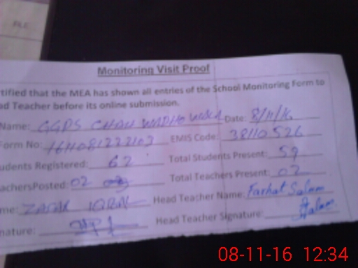 | EMIS Code: 38110526 | Name of School: GGPS CHAH WADHOO WALA | |||