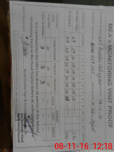 | Monitoring Date: 08-11-2016 | Start Time: 08-11-2016 11:29 AM | End Time: 08-11-2016 12:20 PM | Name of MEA: M.Ta**** Iq**** (S**** | |