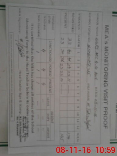 | Monitoring Date: 08-11-2016 | Start Time: 08-11-2016 09:56 AM | End Time: 08-11-2016 11:00 AM | Name of MEA: M.Ta**** Iq**** (S**** | |