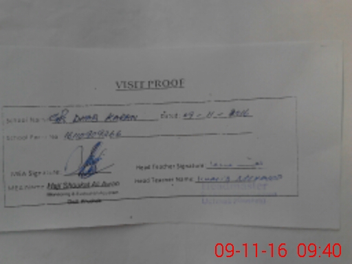 | Attendance Register | Head Teacher | MEA with School | Visit Proof |