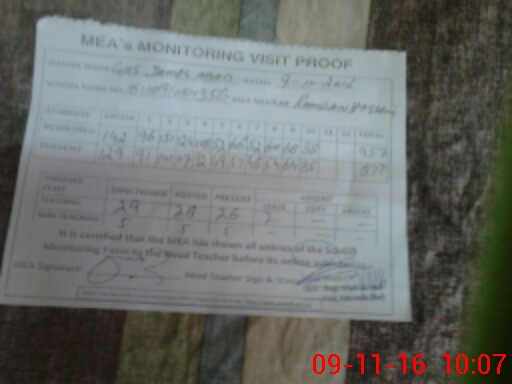 | Attendance Register | Head Teacher | MEA with School | Visit Proof |