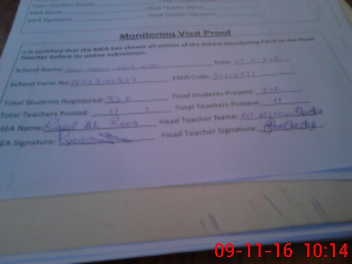 | Attendance Register | Head Teacher | MEA with School | Visit Proof |