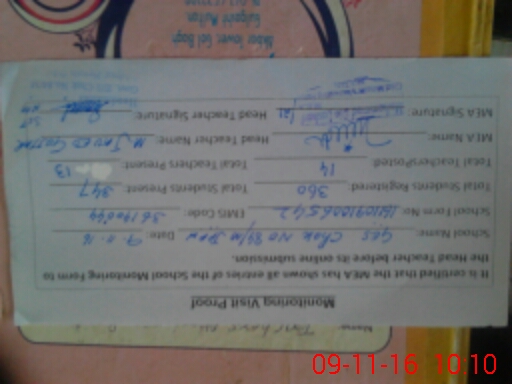 | Attendance Register | Head Teacher | MEA with School | Visit Proof |