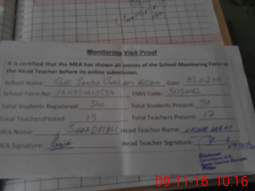 | EMIS Code: 36130062 | Name of School: GHS SANDA GHULLAM HUSSAIN | |||