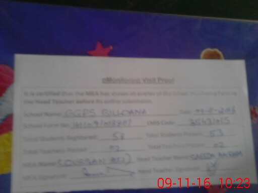 | EMIS Code: 35431015 | Name of School: GGPS BILLU ANA | |||