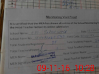 | Attendance Register | Head Teacher | MEA with School | Visit Proof |