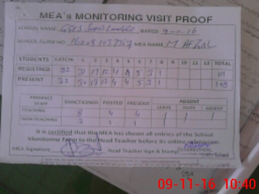 | Certified that this School was Inspected by the Undersigned MEA/DMO Today and the Information Stated Above is as Per Record. | |||||