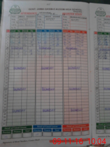 | Remarks (Use Separate Page if Required): There are 17 teachers entered on tab where as physically 20 teachers are working 02 teachers are on leave | |||||