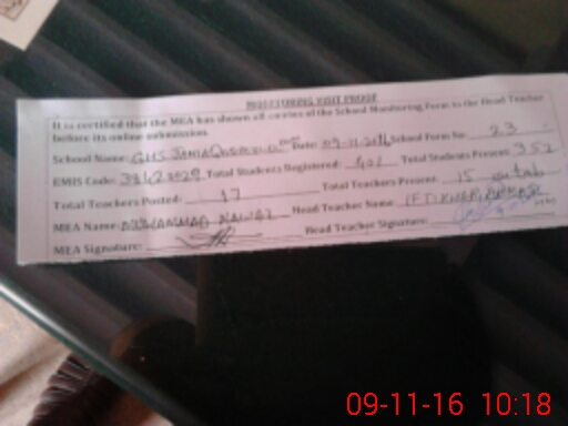 | EMIS Code: 38420029 | Name of School: GHS JAMIA QASIM UL ULOOM JINNAH COLONY | |||