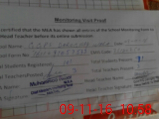 | Attendance Register | Head Teacher | MEA with School | Visit Proof |