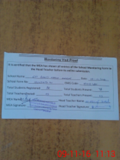 | Certified that this School was Inspected by the Undersigned MEA/DMO Today and the Information Stated Above is as Per Record. | |||||