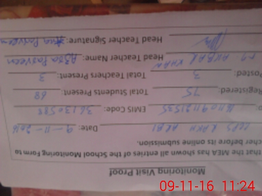 | Certified that this School was Inspected by the Undersigned MEA/DMO Today and the Information Stated Above is as Per Record. | |||||