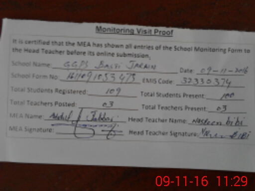 | EMIS Code: 32330374 | Name of School: GGPS BASTI JARAIN | |||