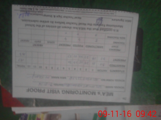 | Monitoring Date: 09-11-2016 | Start Time: 09-11-2016 09:11 AM | End Time: 09-11-2016 09:44 AM | Name of MEA: MU**** SH**** | |