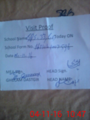 | Attendance Register | Head Teacher | MEA with School | Visit Proof |