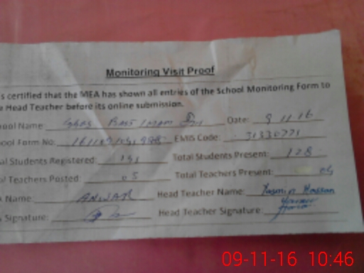 | Attendance Register | Head Teacher | MEA with School | Visit Proof |