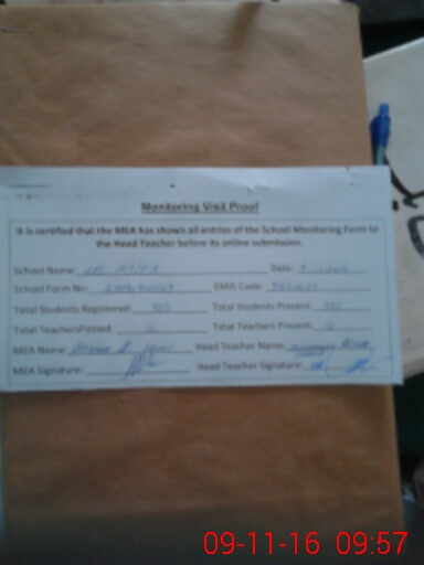 | Attendance Register | Head Teacher | MEA with School | Visit Proof |