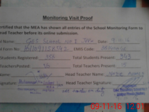 | EMIS Code: 36140046 | Name of School: GES JALAL PUR PIRWALA NO.1 WARD NO 4 | |||