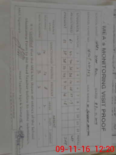 | Attendance Register | Head Teacher | MEA with School | Visit Proof |