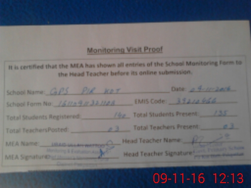 | EMIS Code: 39210466 | Name of School: GPS PIR KOT PAKPATTAN | |||