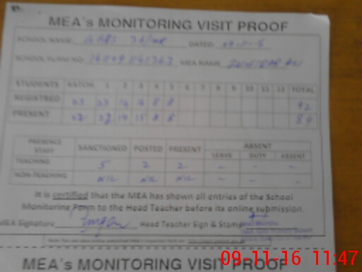 | Attendance Register | Head Teacher | MEA with School | Visit Proof |